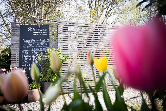 Wir freuen uns, wenn Sie stattdessen direkt zu uns am Hof kommen, die grössere Auswahl an Sorten und Raritäten macht sich bezahlt! An den JungpflanzenFest-Wochenenden gibt es biologisches, vegetarisches Essen, Kuchen und Kaffee und eine Führung um 15 Uhr. Wir meinen, es lohnt sich, den Weg nach Allhaming einzuschlagen!